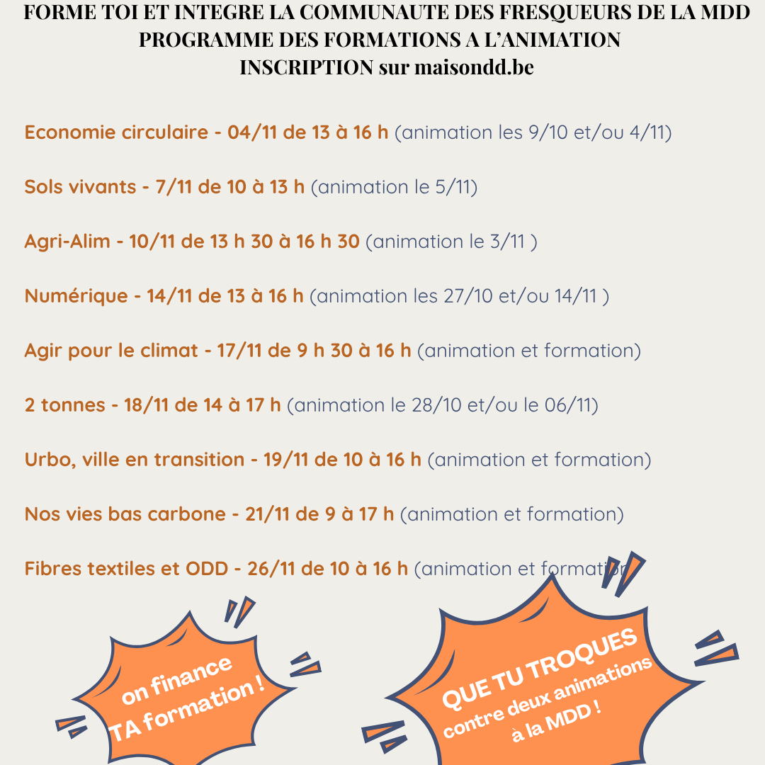 Durant le mois de novembre, la MDD vous offre la possibilité de vous former à 9 outils ( fresques ou ateliers) pour augmenter en compéten...