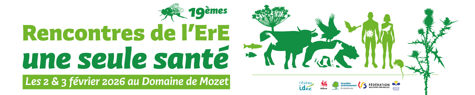 Les Rencontres de l’ErE, c'est le rendez-vous qui réunit tous les deux ans les professionnel·les de l’ErE pour explorer, pendant deux jours une thématique (voir les éditions précédentes). En 2025, le thème de la santé nous a été soufflé à de nombreuses occasions. Ces lundi 2 & mardi 3 février 2026 au Domaine de Mozet, nous vous proposons un programme pour découvrir et questionner les concepts de « One Health » et des « soins verts », explorer les liens entre santé et environnement, s’inspirer de partenariats entre nos deux secteurs, visibiliser les spécificités et complémentarités des uns et des autres…